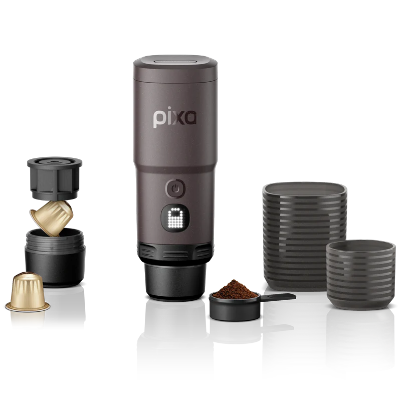 Fully electric and portable: The Pixapresso heats water and brews coffee automatically, eliminating the need for an external heat source.