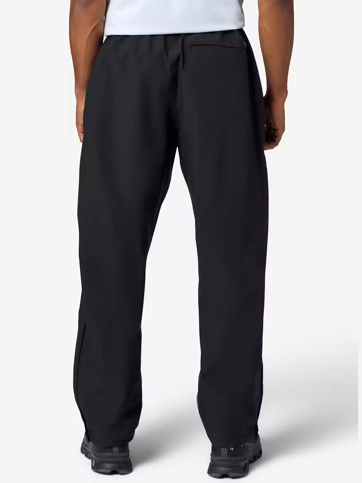 For practical usability in shifting weather, the pant features side zips and ankle snaps that make it easier to pull on over footwear. An elastic waistband with internal drawcord improves comfort and fit, while zippered hand pockets and a zippered back pocket keep essentials secure. The back pocket also doubles as a compact stash pocket for storage when the pant is not in use.