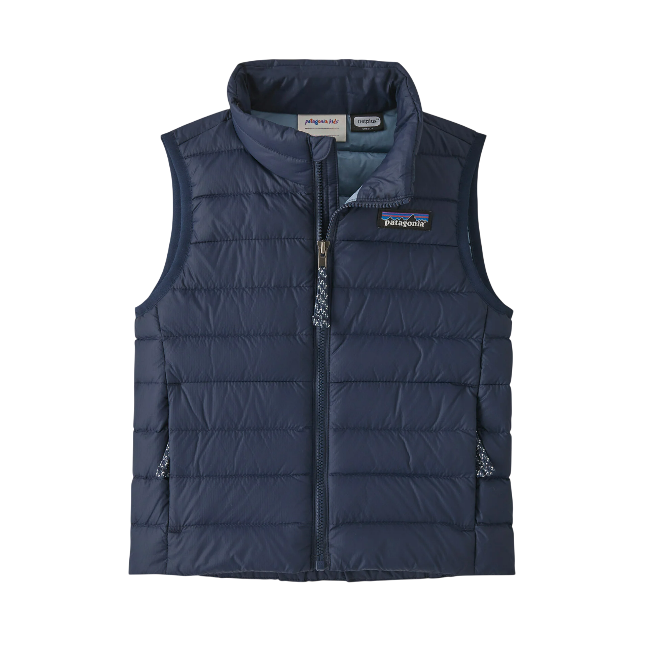 The Baby Down Sweater™ Vest has a NetPlus® 100% postconsumer recycled nylon ripstop shell made from recycled fishing nets to help reduce ocean plastic pollution; is insulated with warm, compressible 700-fill-power 100% Recycled Down (duck and goose down reclaimed from down products); and layers easily for warmth in colder conditions.