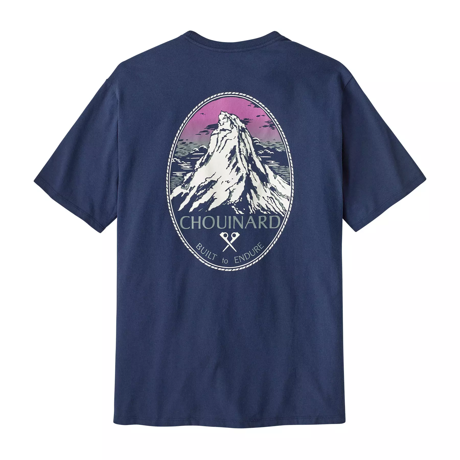 They added gradient-printed color to this classic graphic from the early days of Patagonia. Check it out on Chouinard Crest Pocket Responsibili-Tee® that's made with recycled fabrics.