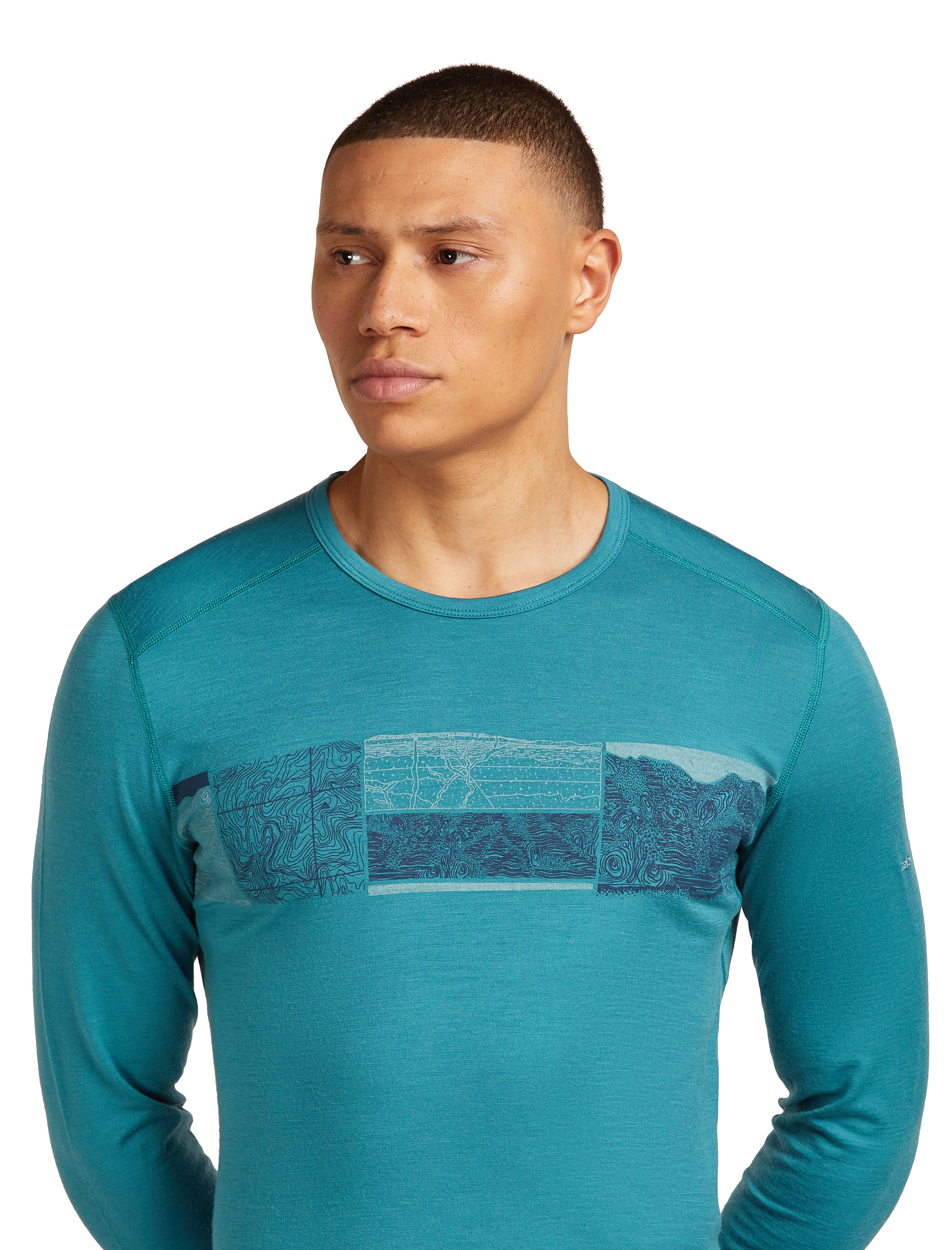 Setting the standard for all others to follow, the 200 Oasis Long Sleeve Crewe Elevation Line is icebreaker's best-selling base layer—a versatile active top for year-round layering and everyday comfort. The original artwork features a unique infographic showcasing elevation lines, topographic maps, and mountain anatomy.