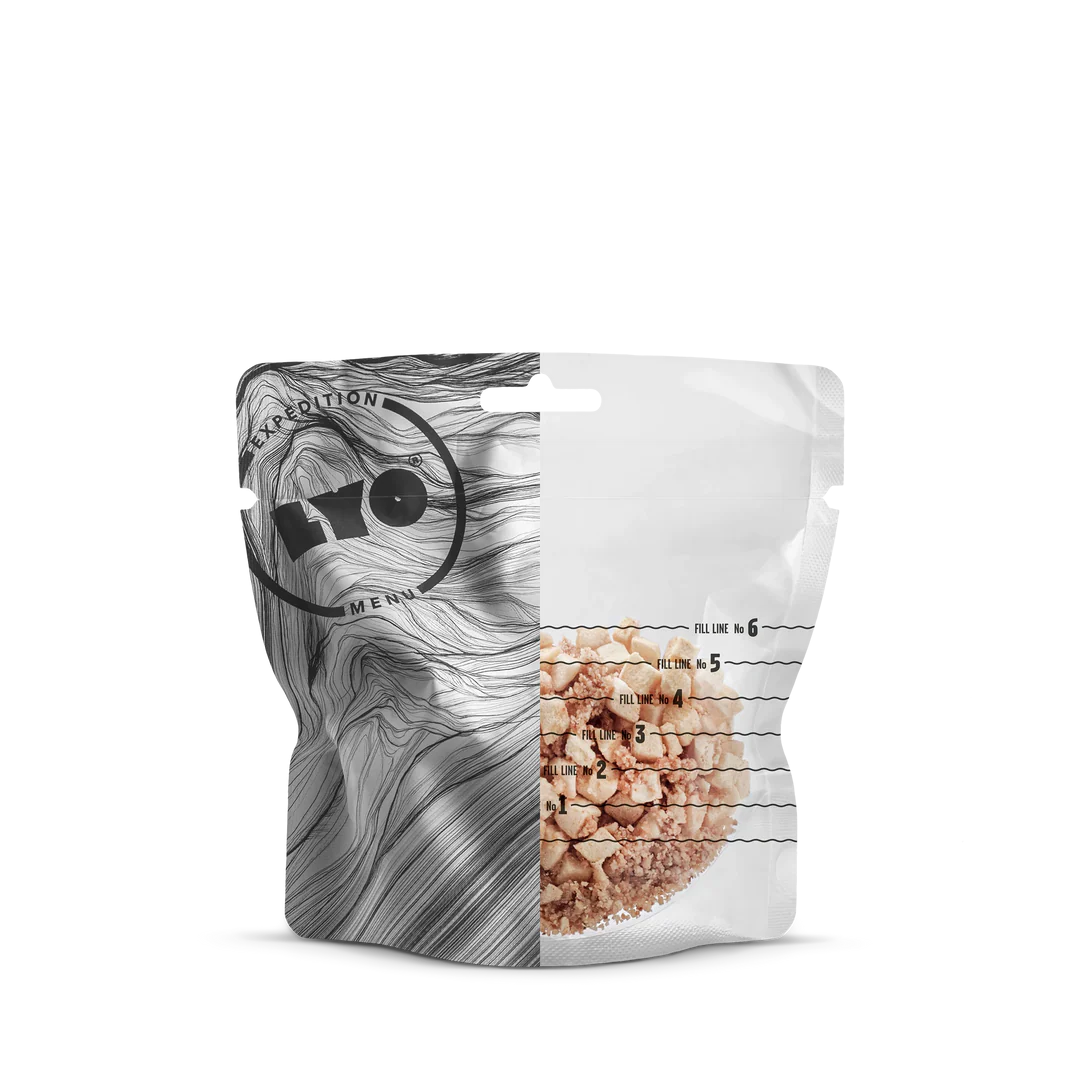 Long shelf life: LYO EXPEDITION meals can be stored for a long time. Since the water content is being removed during the freeze-drying process, microorganisms and enzymes action are inhibited. Each pouch is hermetically sealed and contains an oxygen absorber.