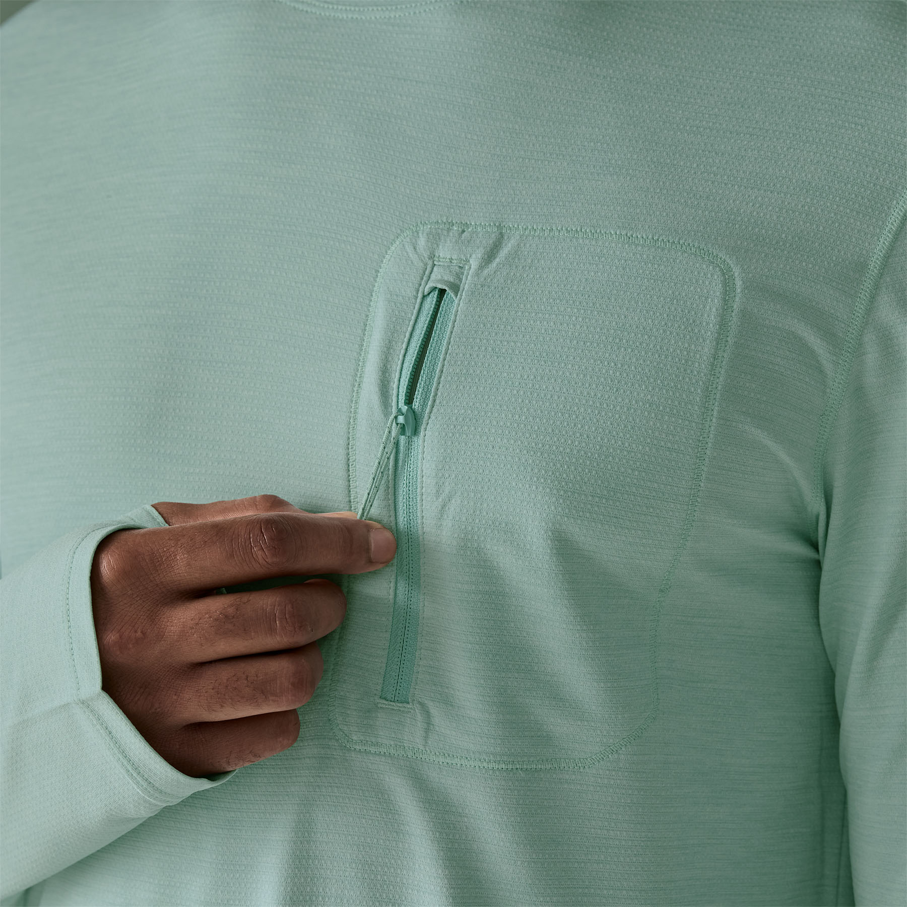 Thumb holes at the cuffs provide added sun protection for the backs of the hands - Pocket Details