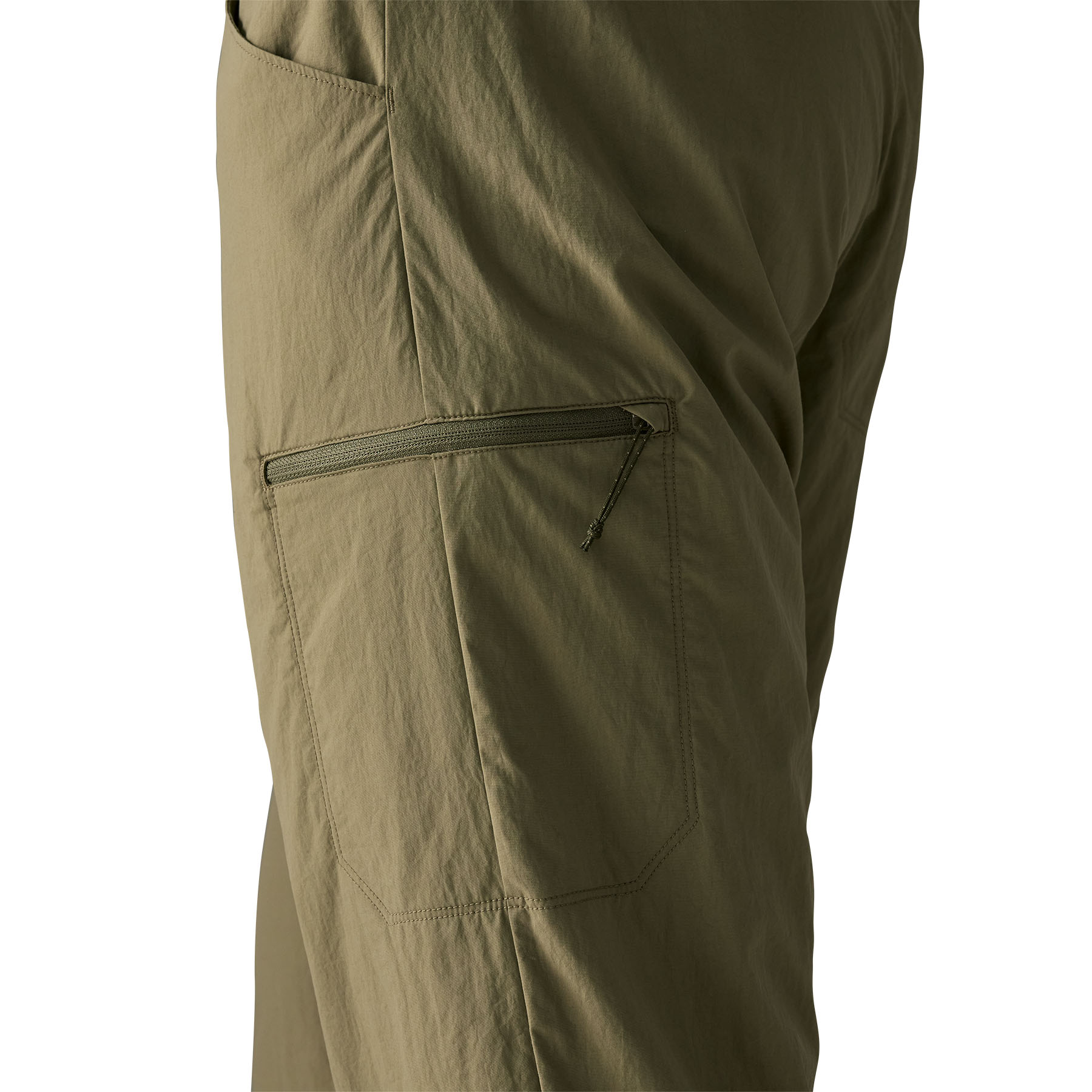 Един заден джоб с цип; два предни джоба с мрежест дренаж; джоб за ценности с цип на дясното бедро