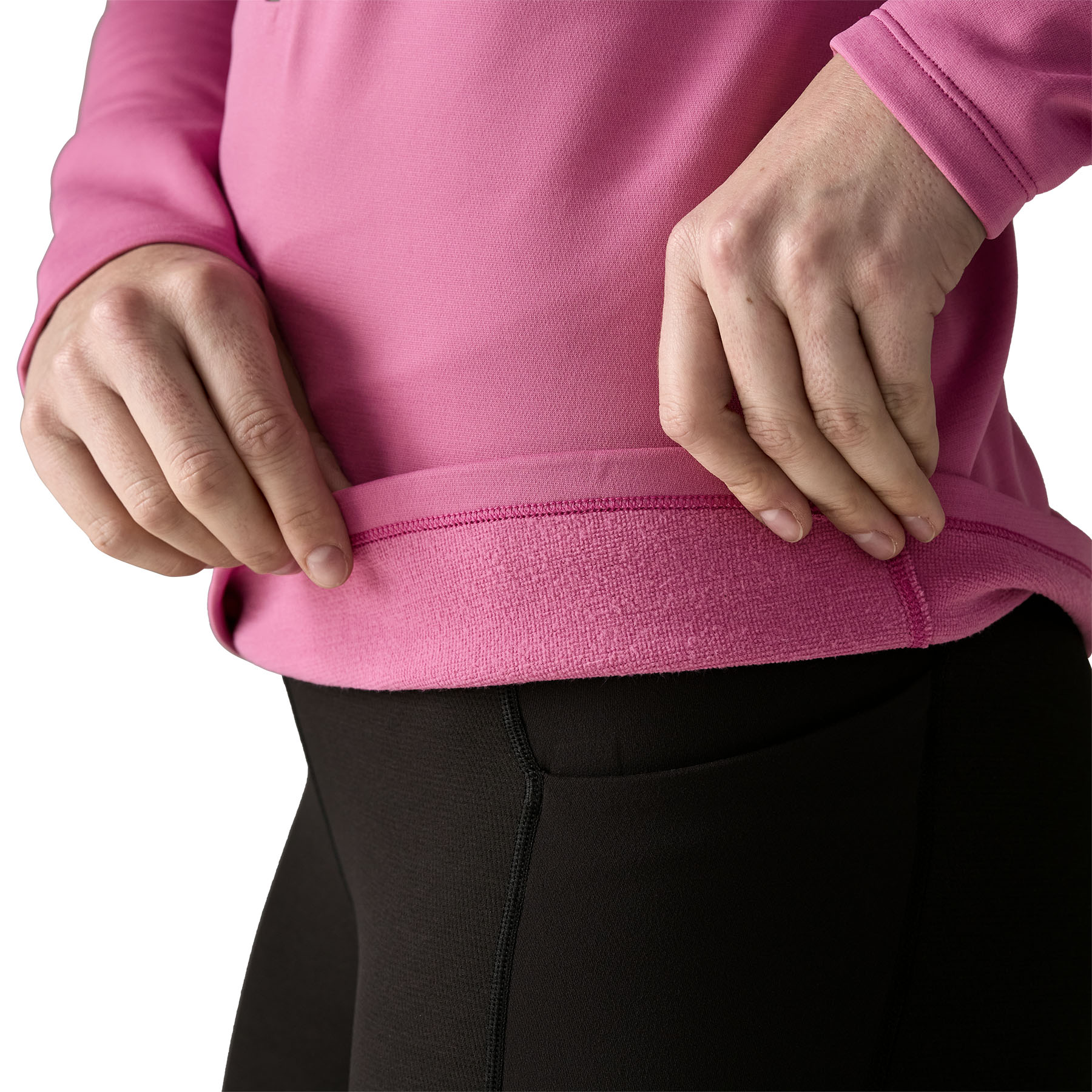 Ръкавите с нисък профил покриват китките и лесно се повдигат над предмишниците; подгъвът е достатъчно дълъг, за да остане прибран под седалката.