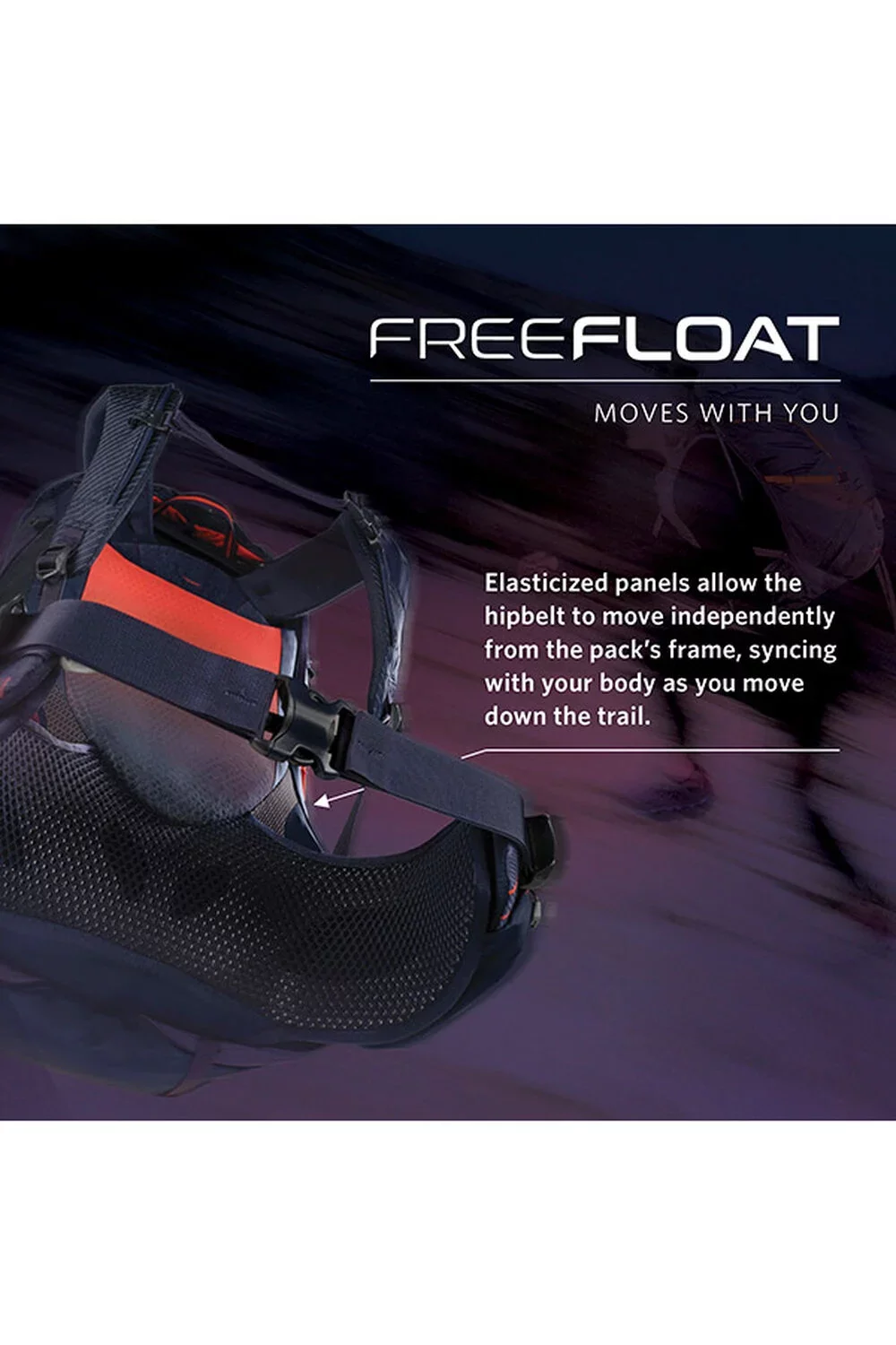 Динамичен кръстен колан FreeFloat с гъвкави панели, които следват естествените движения на тялото