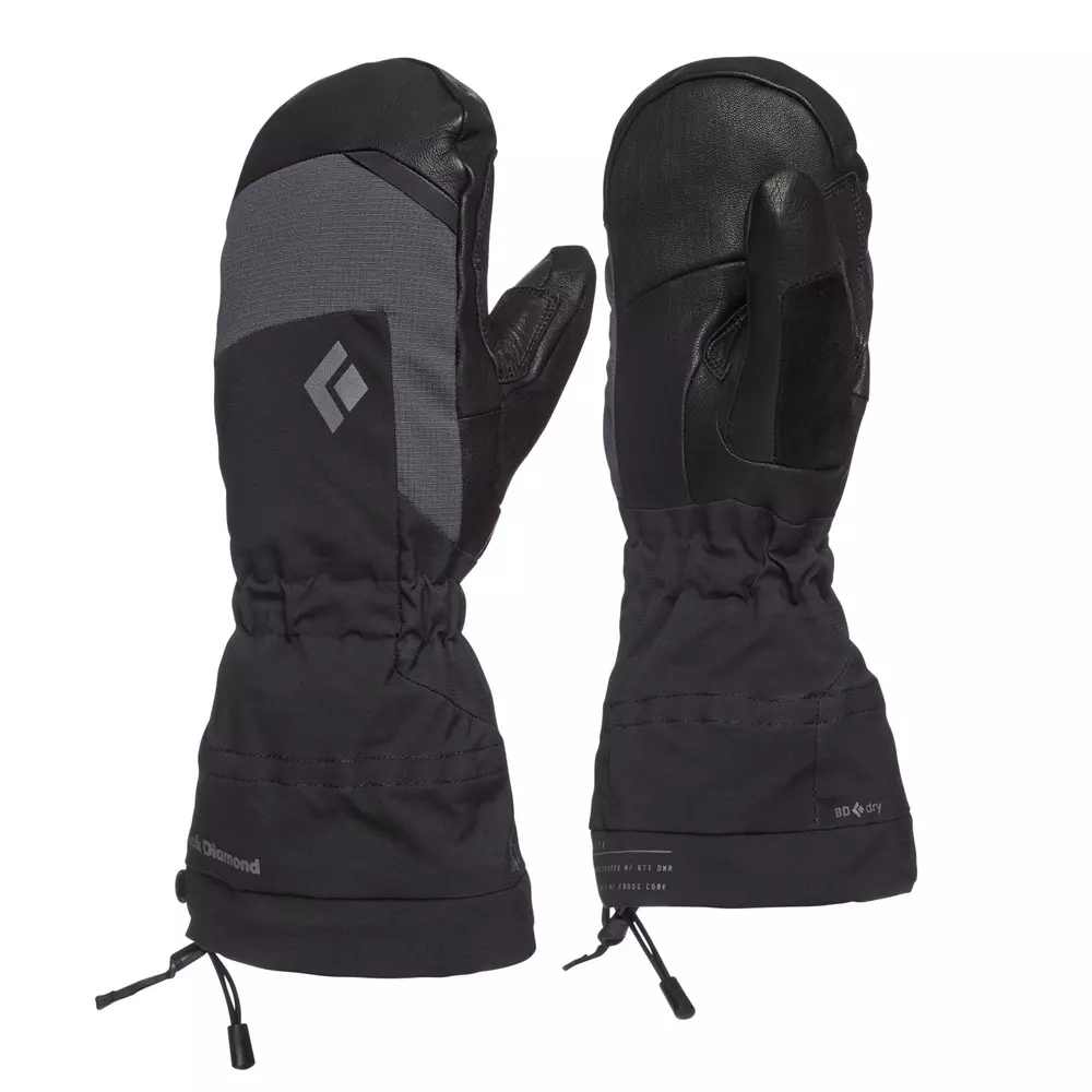 Ръкавицата Black Diamond Mercury Mitt е популярен избор за целогодишна употреба и съчетава BD.dry™ водоустойчива вложка с Empel DWR на обвивката. Подвижната изолирана вложка, изпълнена с Primaloft Gold Cross Core, съхне бързо и изолира дори когато е мокра. Четирипосочната разтеглива материя на черупката и дългият маншет на ръкавицата задържат течението и влагата навън, а дланта от козя кожа и допълнителният подсилващ слой издържат на скалист терен, многократно боравене с въжета и общото износване, свързано със специалната употреба в планината.