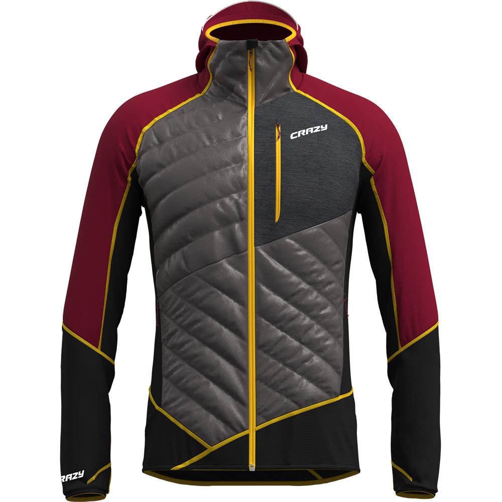 CRAZY JACKET CHANNEL INSULATION е мъжко hибридно яке, конструирано така, че да предлага оптимален баланс на терморегулация, защита и комфорт при outdoor активности и планински условия, включително ски алпинизъм и преходи в студено време. Якето съчетава различни специализирани материи в зоните на тялото, за да предложи запазване на топлината отпред, дихателност отзад, както и леко тегло и свобода на движение.