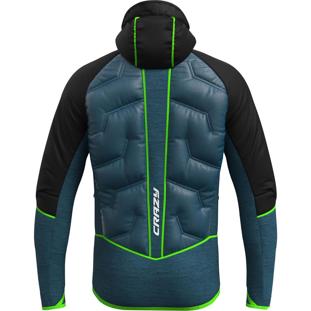 CRAZY JKT VIPER е мъжко хибридно яке, проектирано да предлага отлична термоизолация, комфорт и защита при студено време. Якето използва комбинация от технически материали и забезпечава топлина отпред чрез Pertex Quantum плат с пухена изолация, който запазва топлината ефективно и влага бързо ще се изпари. Раменете и ръкавите са от водоотблъскваща Toray One Layer тъкан, подплатена с Polartec Alpha Direct, която осигурява допълнителна топлина и комфорт дори при пряк контакт с кожата. Долната част и маншетите са от HP флийс, който допринася за лесно регулиране на температурата.