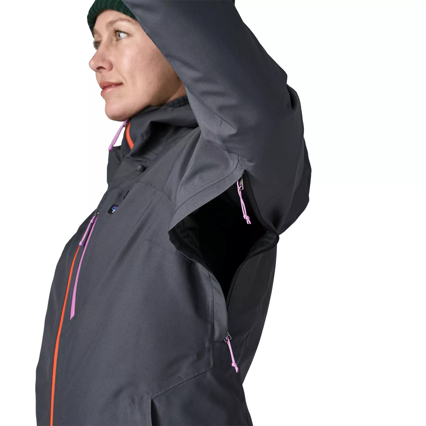 Pit Zips бързо освобождават топлина; съчленени оръжия за мобилност