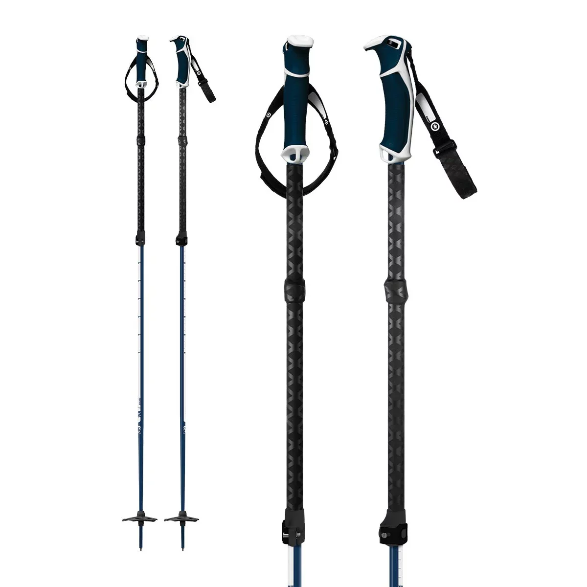 Every aspect has been thought out, with a lower side hill touring grip. The burly forged Aluminum lever with a simple and easy to use offset cam gives you a reliable and sturdy connection between pole sections.