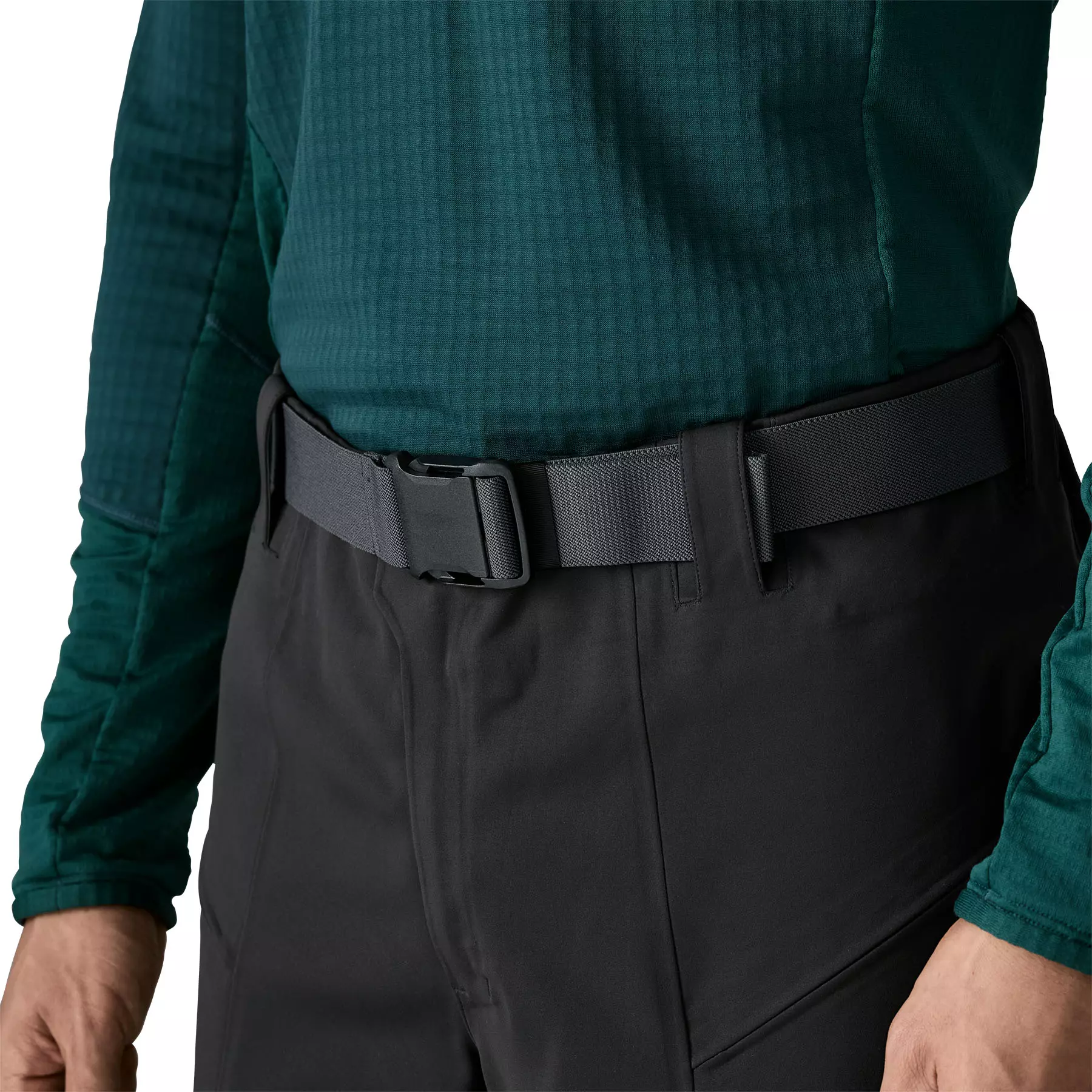 Stretchy, weather-resistant bonded soft-shell fabric is PFC-free and has a knit-grid backer that slides effortlessly over skin and baselayers