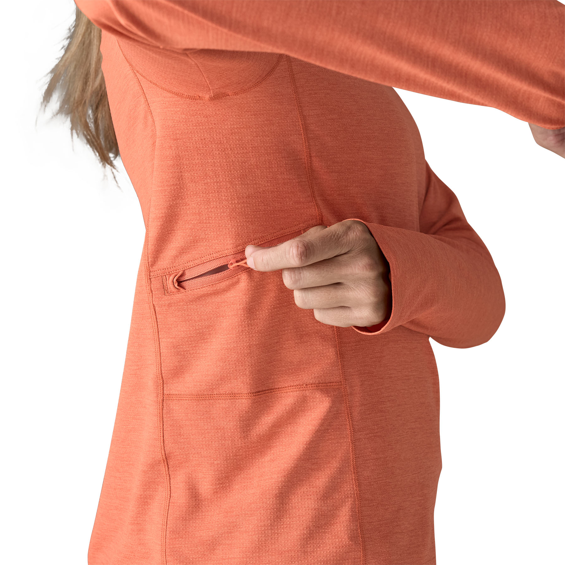 Thumb holes and middle finger loops at the cuffs provide added sun protection for the backs of the hands - Pocket Details